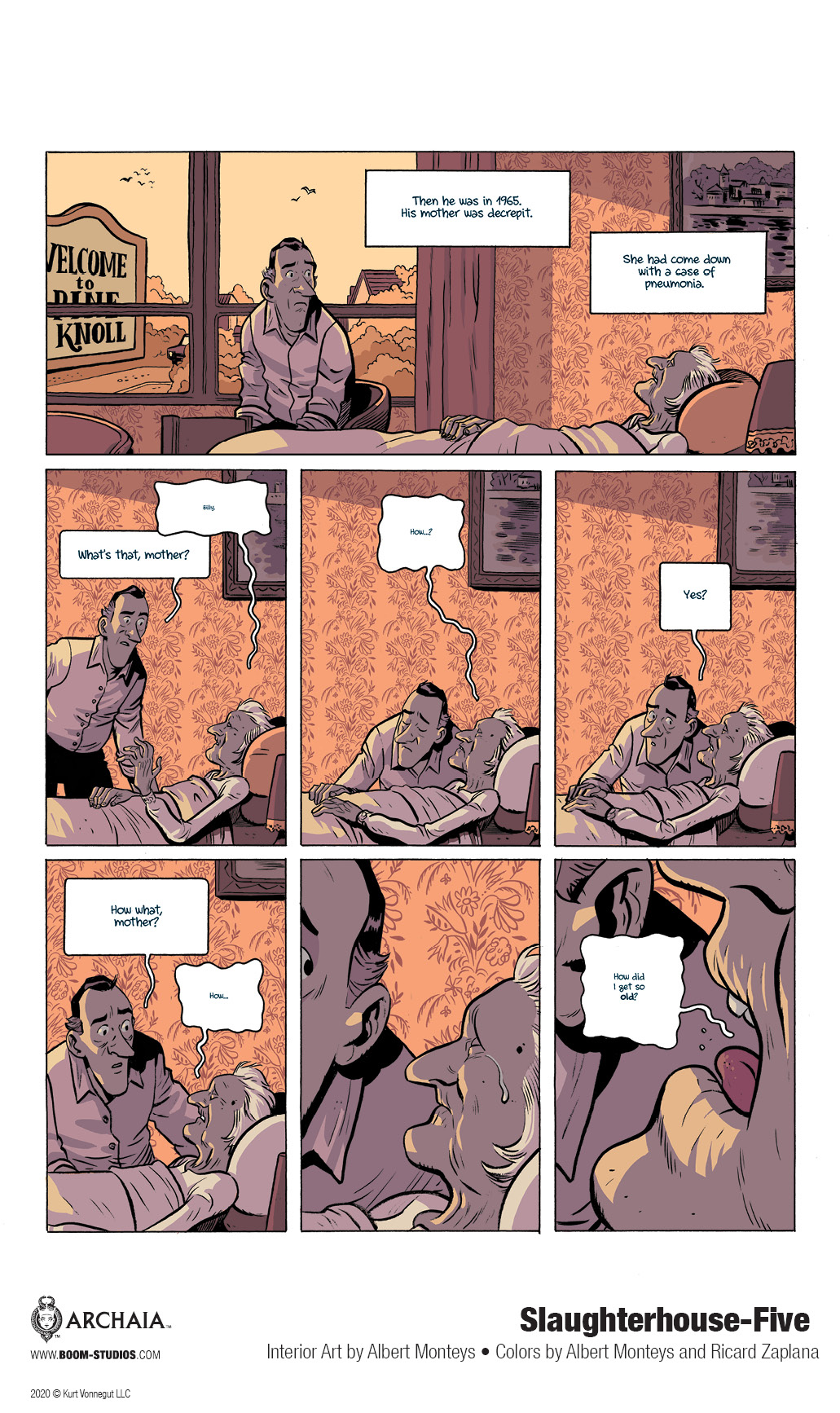 When the Slaughterhouse-Five graphic novel is released in September, it will be available for purchase at local comic book shops, bookstores, or the BOOM! Studios webstore. BOOM! says that digital copies will also be available for purchase via comiXology, iBooks, Google Play, and Madefire. There doesn’t seem to be any pricing information available at this time, but BOOM! says it will be announcing more of the project’s details this year via its Twitter account.